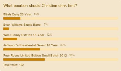 After 162 votes the winner is Four Roses Limited Edition Small Batch bourbon.