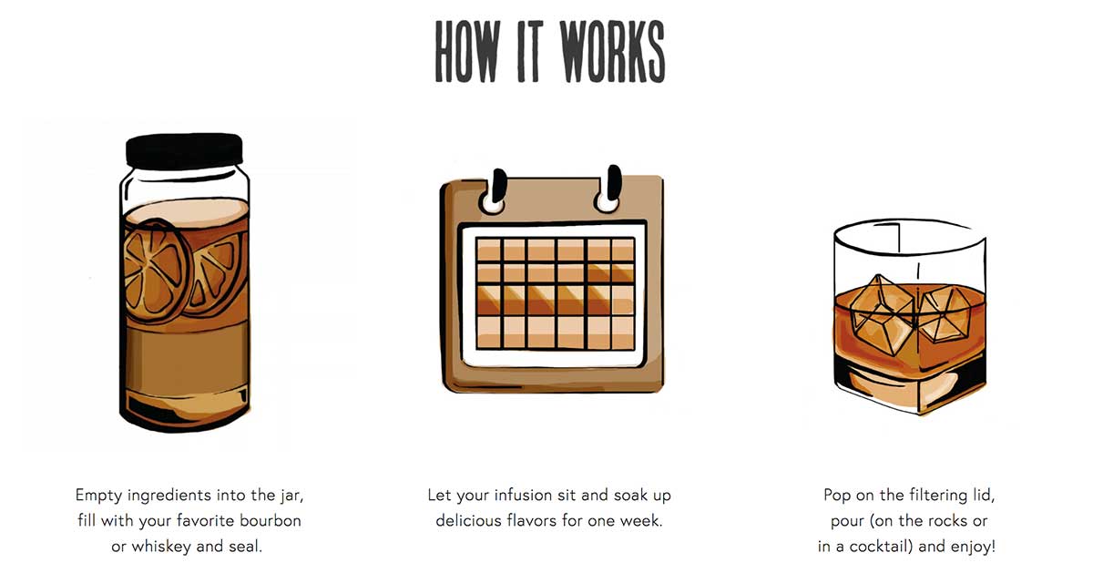 Aged & Infused makes whiskey infusion kits. Similar to those meal delivery kits you’ve seen ads for or heard about on podcasts, all of the ingredients are individually pre-packaged and designed for ease of use. The process is simple: Open the jar and remove the packages of ingredients, open packages and put ingredients back in the jar, fill the jar with bourbon, wait one week, enjoy.