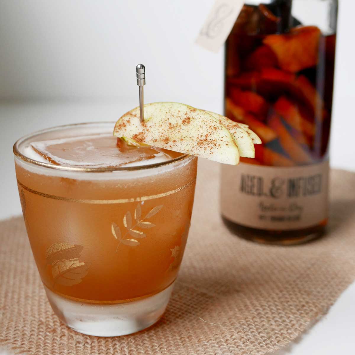 My infusion was “Apple-A-Day” and included dried apples, cinnamon sticks, and a vanilla bean. I used Wild Turkey 101 bourbon because I like Wild Turkey 101 bourbon. You can use what you like or maybe something you don’t like enough to drink neat. The resulting infusion tasted like bourbon apple pie. While not cloying, the sweetness was a little too much for me to enjoy straight. Fortunately, the kit included a cocktail recipe.