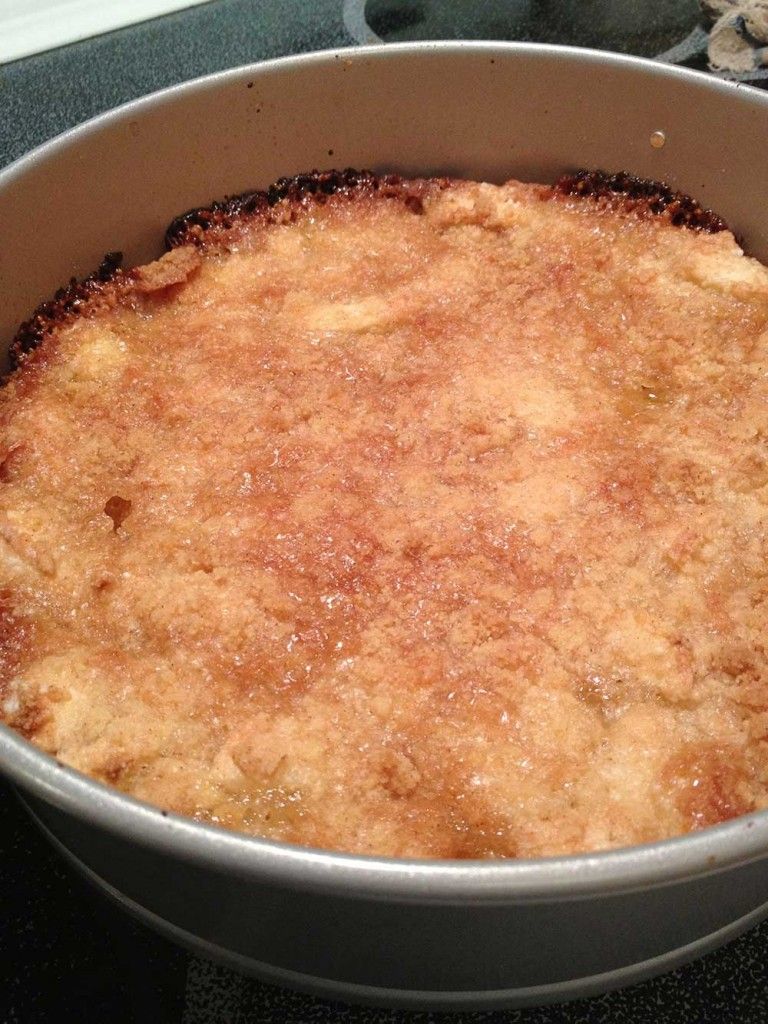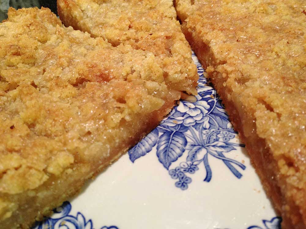 Spread the apples evenly on the crust. Sprinkle the remaining crumb mixture evenly on top.