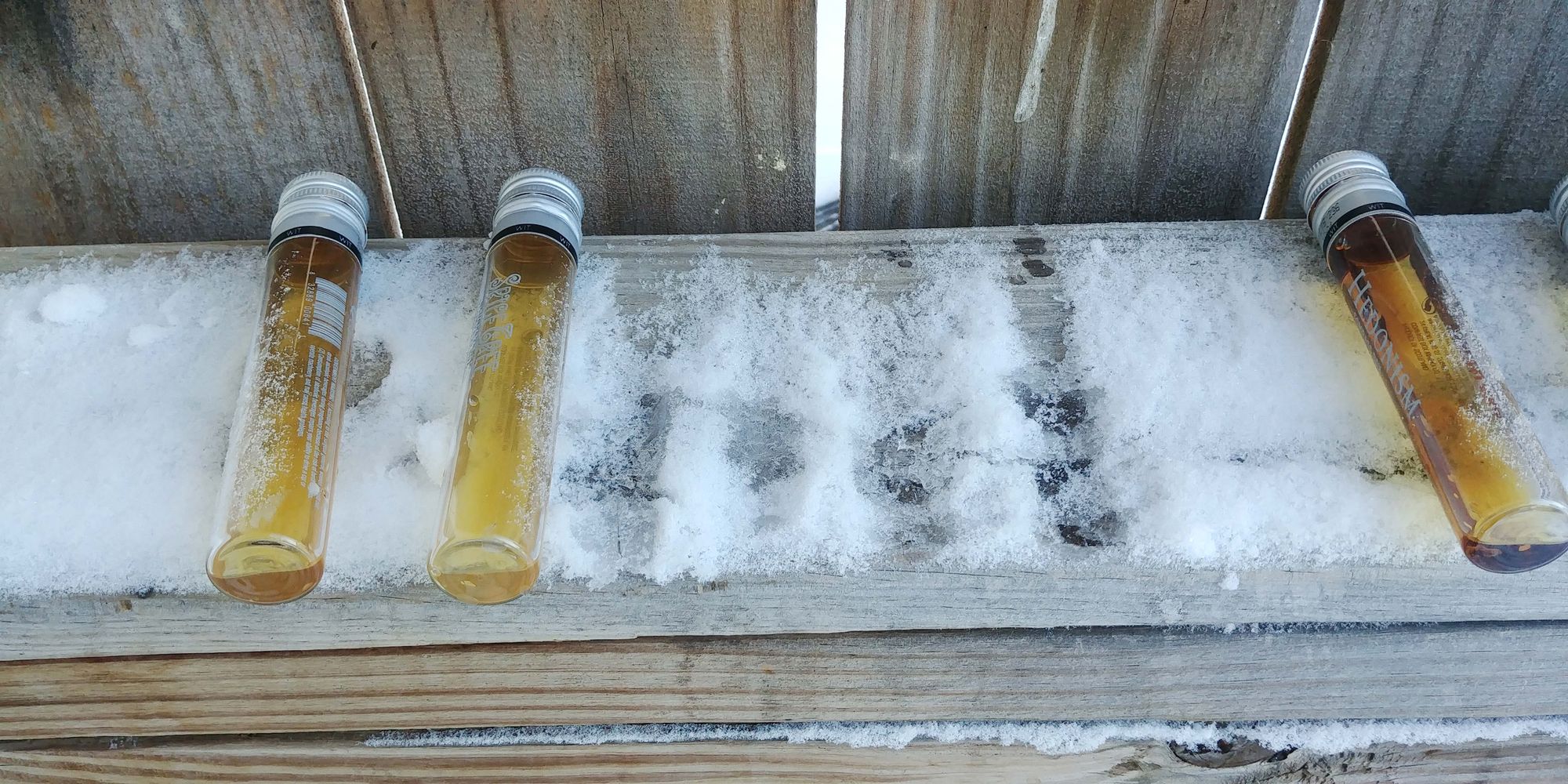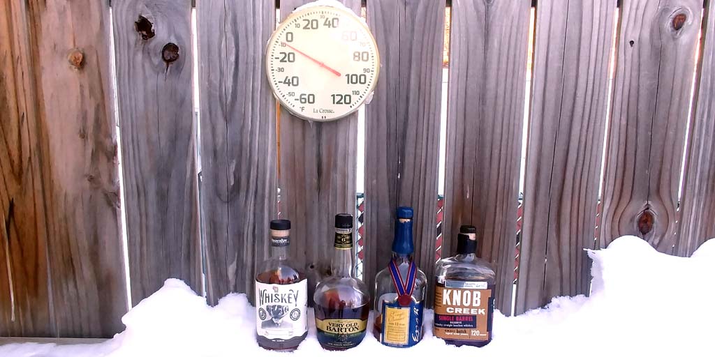 This meant I was stuck in my house for three days. But, I still had to venture outside. I have a housebroken dog that I need to remain housebroken, and as such, that required letting in a cold blast every time Sammy decided it was “time.” I wanted to make the best of a bad situation, and thought it would be fun to take advantage of some truly brutal weather to conduct a fun whiskey experiment: What happens to whiskey in arctic conditions? Yeah, I was channeling Harlan Wheatley.