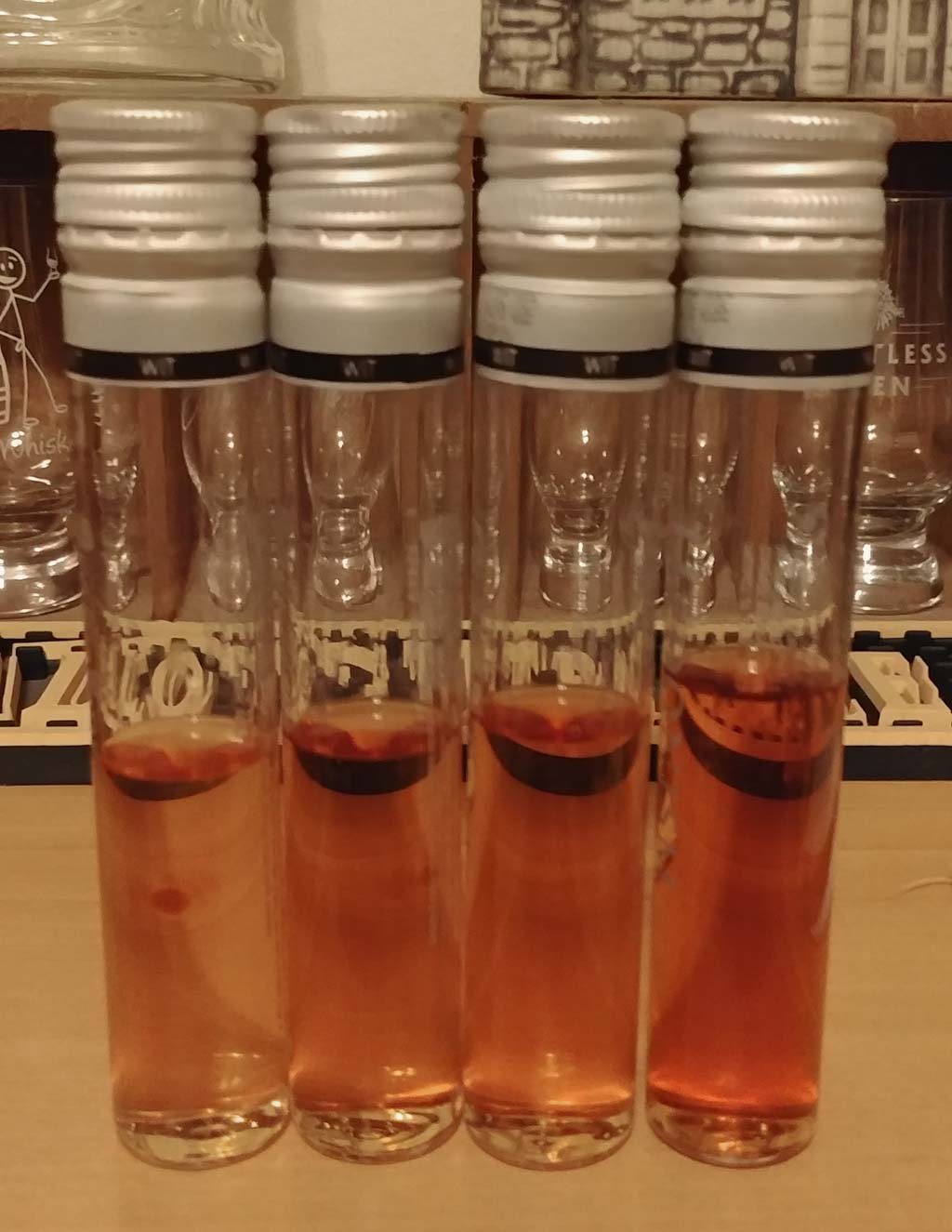 I then let the whiskeys all come back to room temperature and let them sit for a day. I was curious if anything changed while the whiskeys were frozen or even thickened compared to their original counterparts.