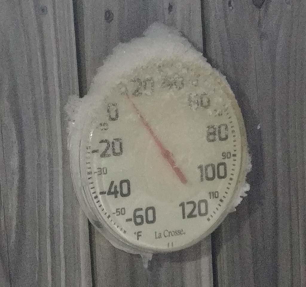 Fast forward to 6:40 am on Wednesday, the real temperature was -24°F with wind chills of -54°F. At this point, both the 80° Yahara Bay and the 86° Very Old Barton were slushy. The other two showed nothing, not even a thickening.