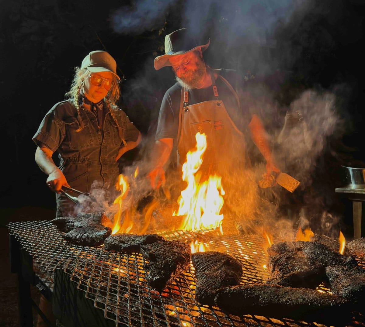 The event I attended featured lots of Bearface poured neat and served in cocktails. On a warm, dry night on a dusty plot of ground outside of Austin, cocktails were great for thirst quenching, but I prefer neat spirits with food, and those flowed liberally. The centerpiece of the meal was a mountain of meat grilled over live wood fires—a difficult feat even for pros who know what they’re doing, and this crew did.