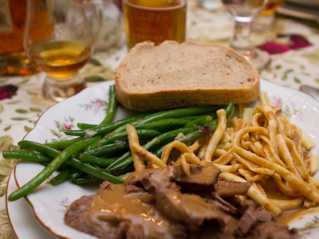 In one of our brainstorming sessions, my wife expressed her interested in sticking to a food menu that would allow her to get as much of it prepared in advance as possible. (The previous year’s six-courses was a little too intense regarding preparation.) She started offering up ideas and eventually suggested German food. As you can imagine, I quickly dismissed it since bourbon has little to do with German food traditionally and I couldn’t see how to bring them together easily. But luckily for us, the seed of an idea had been planted, and we didn’t even know it.