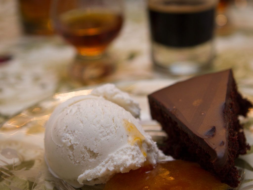 Each and every dinner course tasted delicious but my favorite was the Sauer Braten and Spaetzle. In regards to the beer and whiskey pairings, I thought that the Four Roses Single Barrel together with the Urban Chestnut Stammtisch was the best liquor pairing of the evening.  I enjoyed the Russell’s Reserve with the dessert course but the addition of the Uncle Jacob’s Bourbon Barrel Age Stout was over the top. Tasty, but too sweet after all of the food and drink we had consumed.