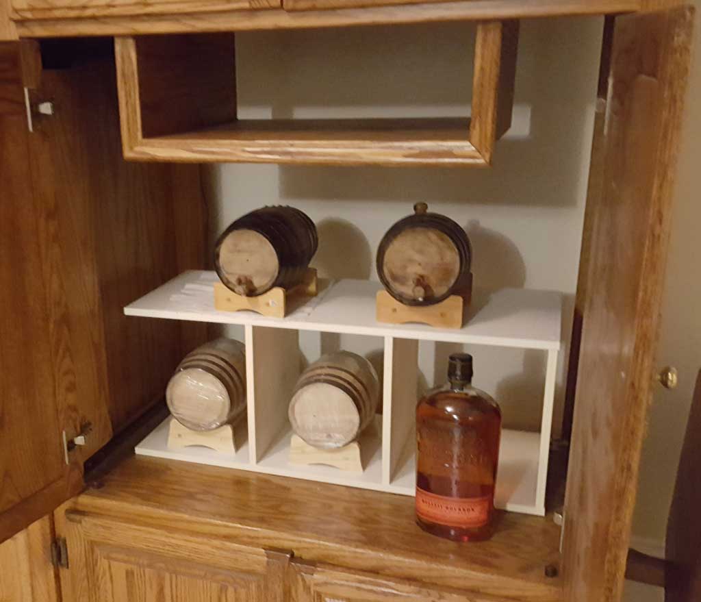 Then one day as my bourbon stock was at risk of breakage due to the overstock situation, my wife had the brilliant idea of converting the old entertainment center into a liquor cabinet. For us it is the perfect choice. With many adjustable shelves, built strongly enough to handle the weight. A place for glassware and even some bar tools. The crowning glory was that the former TV compartment is ideal for my barrels for barrel aging cocktails. I did a little research online and found that other people with similar ideas had built wine racks in the TV section or even placed for a small refrigerator. The back is typically open, so it is perfect for airflow to the condenser, (sorry for this technical bit, I am kind of a refrigeration guy).