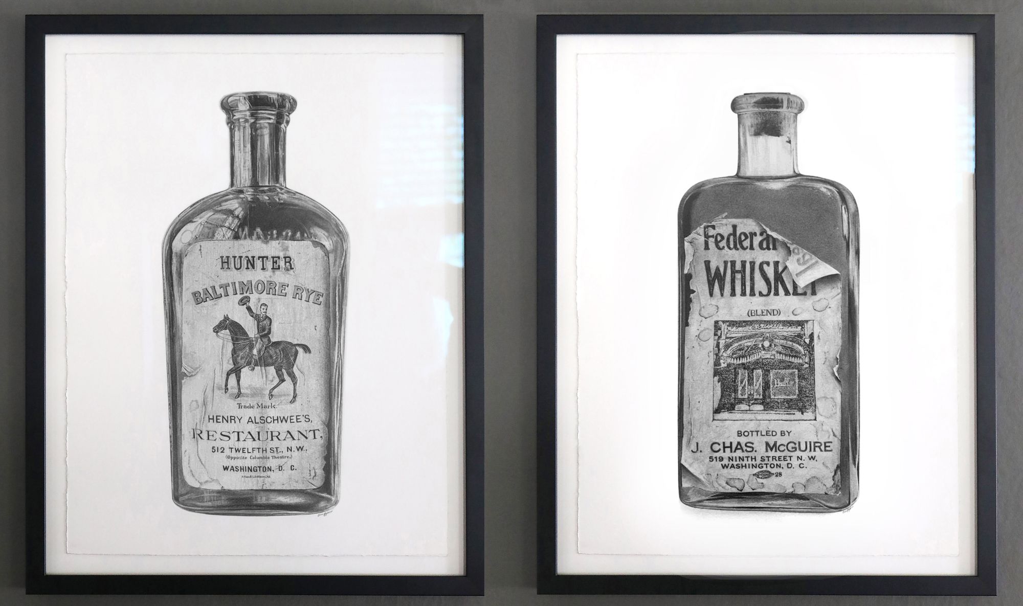Brie has come a long way from her first few bottles. She now exhibits her art across the burgeoning art scene in her current home of Richmond, VA, at multiple festivals (such as the upcoming Boardwalk Art Show in Virginia Beach), and is a member of The Art League Gallery at the renowned Torpedo Factory in Alexandria, VA. Beyond her shows and gallery features, she still works mostly on commission through her website, spreading desire for her work via word of mouth from happy customers. I, myself, recently commissioned her to memorialize my family's former whiskey brand in graphite. And it goes without saying that her one-of-a-kind custom pieces make exceptional gifts and are perfect for distilleries to memorialize their brands through artwork.