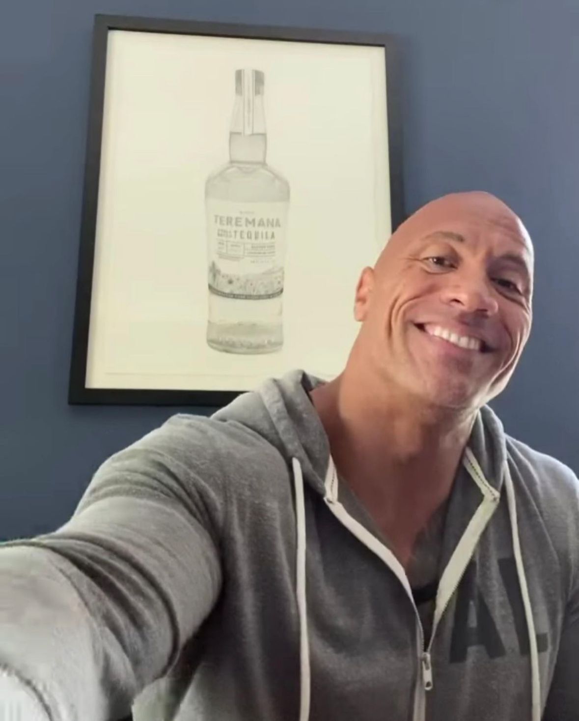 Dwayne "The Rock" Johnson poses with Brie's drawing of his celebrity tequila, Teremana