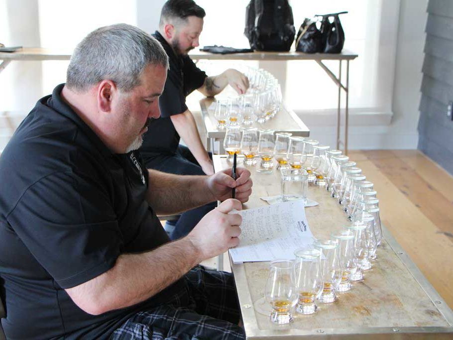 So we tasted and made notes and discussed our findings. Occasionally you hit one that for one reason or another strikes you and you look over at the other tasters, and their eyes are wide too. Those are either definite keepers or bizarre outliers that don’t necessarily represent what you expect from the brand. My note for barrel 1593 was simply “Different!” It was considered an outlier and eliminated. (One distiller told us they had a regular buyer who only chose the outliers as a way to show his customers something different.) After working our way through all of the samples, we eliminated the five we liked the least.