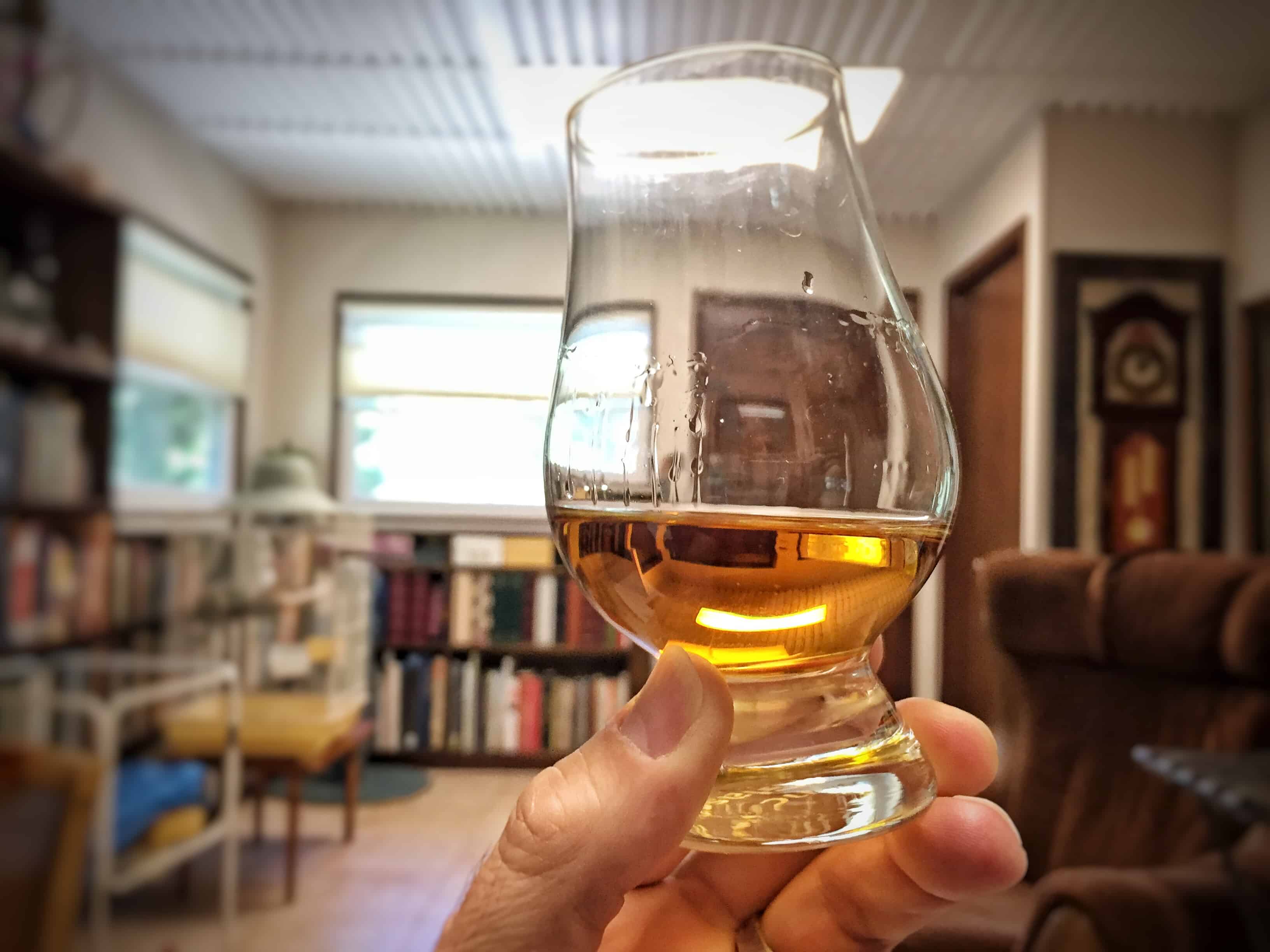 Color: Even though it came in a clear sample bottle, it wasn’t until I poured it into the Glencairn and held it up to the light that I noticed just how vibrant the coloring was. It was a dark golden color, pushing on copper. This was my first indication that it had likely been finished in some type of sherry or port cask.