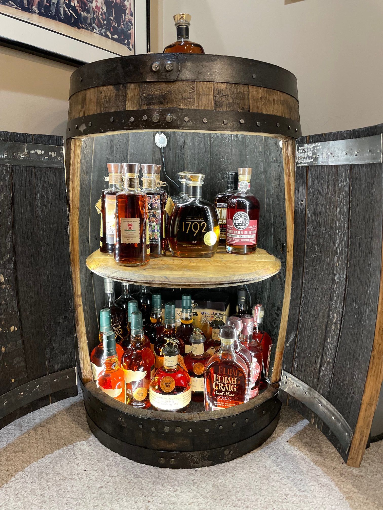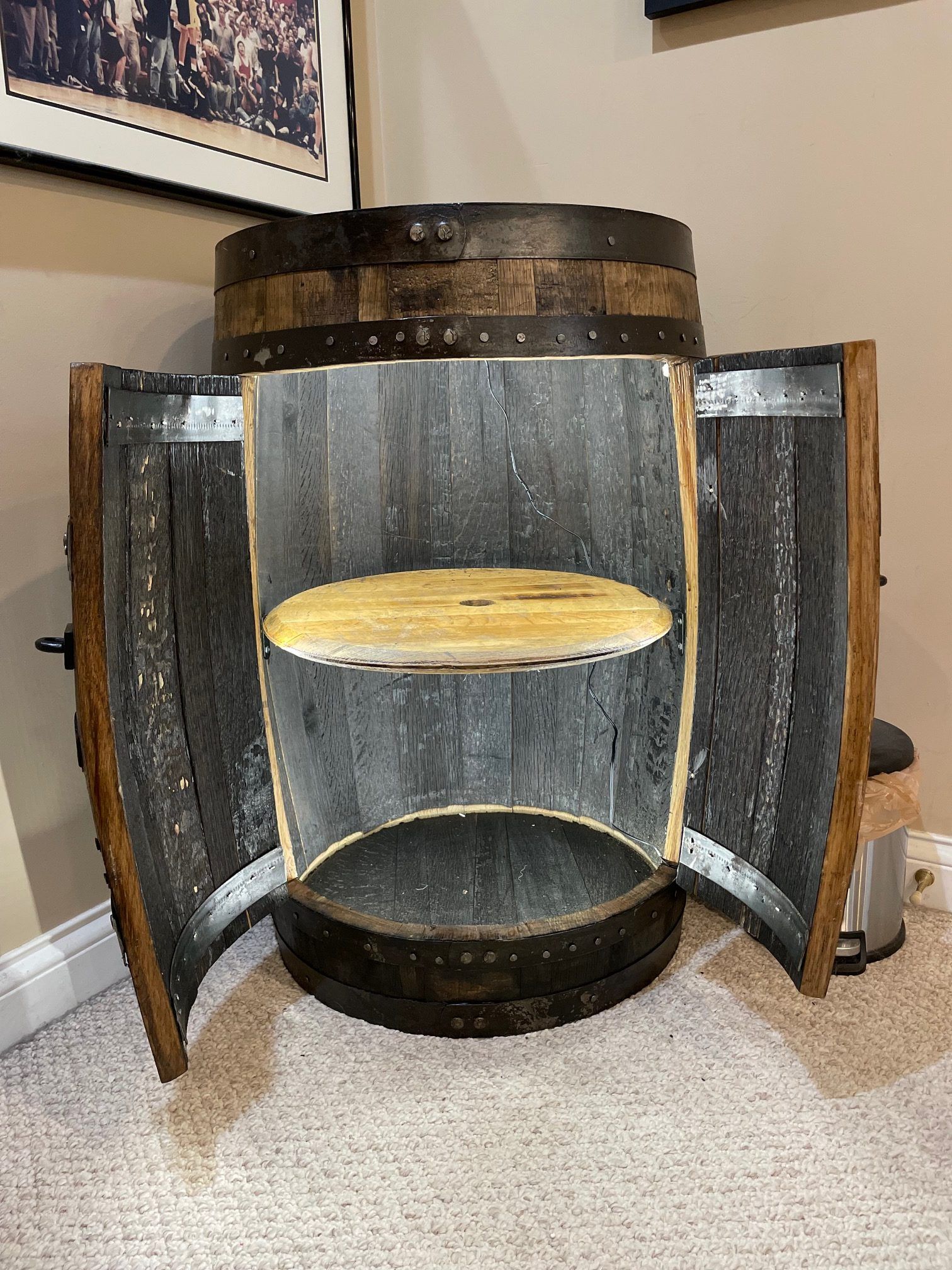 So, how did I like mine? I was thrilled with the detail and care that Holder put into my barrel project. We met and went over a plan to map out the project and my expectations. He went over options for finishes, hardware, doors, latch, as well as the overall look and feel of barrel. We agreed on a price, and he started on the project. He provided lots of updates and pictures of the process via text. A few weeks later he let me know my barrel was ready to be picked up. Check out the before and after pictures in this article.