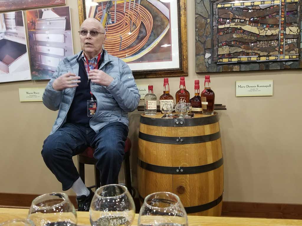 With Bill Samuels, Jr. leading the tour, no place is off limits. We head through the Maker’s 46 cave and into the Private Select tasting room, where we interrupt a selection process and marvel at the beauty of that room. As we are led into the tasting room and sample the portfolio with Bill, Kevin was enjoying each pour more than its predecessor, and we discover that he’s a wheated bourbon fan. He enjoyed the Private Select more than anything else, which was Bill’s stave selection of ten Maker’s 46 staves bottled at cask strength. I think that while the prior pours adjusted Kevin’s palate to where he could drink the Private Select easier, Bill’s stories that morning made that bottle taste even better. I’ll admit, I was surprised a cask strength pour was his favorite of the tasting.