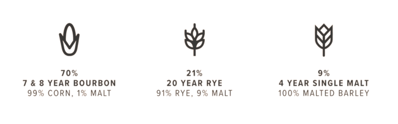 Sounds a lot like a Canadian whiskey blend based on that information. A little research on their website indicates that the whiskey is distilled in Canada and Indiana (presumably at MGP). They include more details, including the final mash bill, which includes a blend of 7 & 8-year bourbon, 20-year rye whiskey, and 4-year single malt.