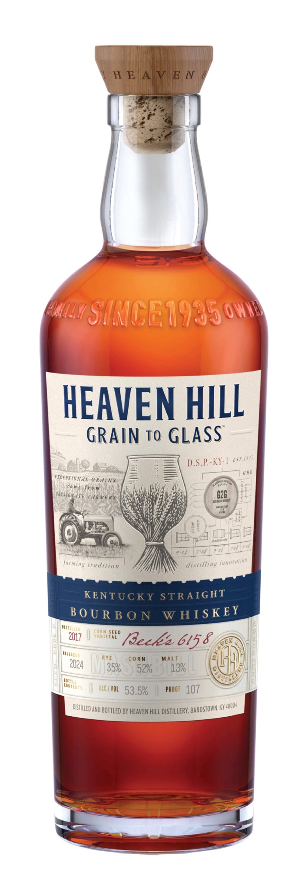 The craft nature of this unique line of Whiskeys starts at the very beginning – the seed. The idea for the line began over eight years ago as the brainchild of Heaven Hill Executive Chairman Max Shapira. Max’s passion for quality and transparency in whiskey-making led to a partnership with seed company Beck’s Hybrids – a fellow family-owned and led operation based in Indiana since 1937. Each year, our Master Distiller works with Beck’s Hybrids to hand-select a unique corn seed varietal that has specific attributes desirable for Heaven Hill Grain to Glass, one of which is choosing seed which is best suited for growth in Central Kentucky. The chosen corn seed varietal is then grown by Peterson Farms on one of two sites in Nelson County, one of which is directly across the street from Heaven Hill’s Bardstown facility. Peterson Farms, a multi-generational family farming company, has been entrusted to take the corn seed varietal and cultivate it into healthy grain that goes into the Heaven Hill Grain to Glass mashbills. Since its founding in 1935, Heaven Hill has prided itself on crafting the highest quality Kentucky Whiskeys. Heaven Hill Grain to Glass honors this legacy and the cherished partnerships which were built on handshakes, not contracts.