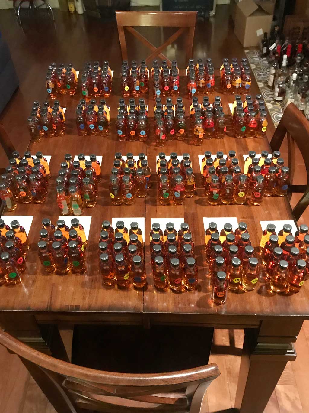 On top of the original 60 bourbon bottles, there would need to be an additional 10 bottles of each of the top 10 bourbons for the event itself. Oh, and they would also need to be from the same barrel for any single barrel bourbons that made the top 10. Spoiler alert: There were 2 of them. Eric Bollmann from Northern Kentucky’s Cork ‘N Bottle was invaluable in helping to procure the bourbons for this event.