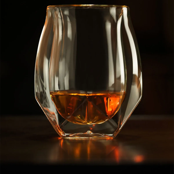 - Shape: This is a double-walled glass with an interior that mimics a Glencairn and an exterior that mimics a stemless wine glass.