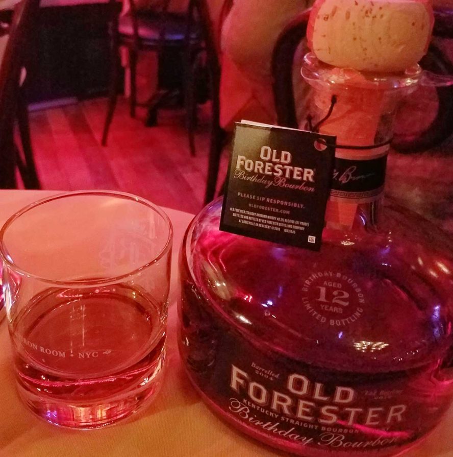 I was looking for the Old Forester Birthday Bourbon, 2016 version and it was on the menu. At least it said Old Forester Birthday Bourbon. I asked the waiter if it was indeed 2016 and he said it was. That was confirmed when he brought the bottle to the table. At The Flatiron Room, the bottle is brought to the table and is poured there.