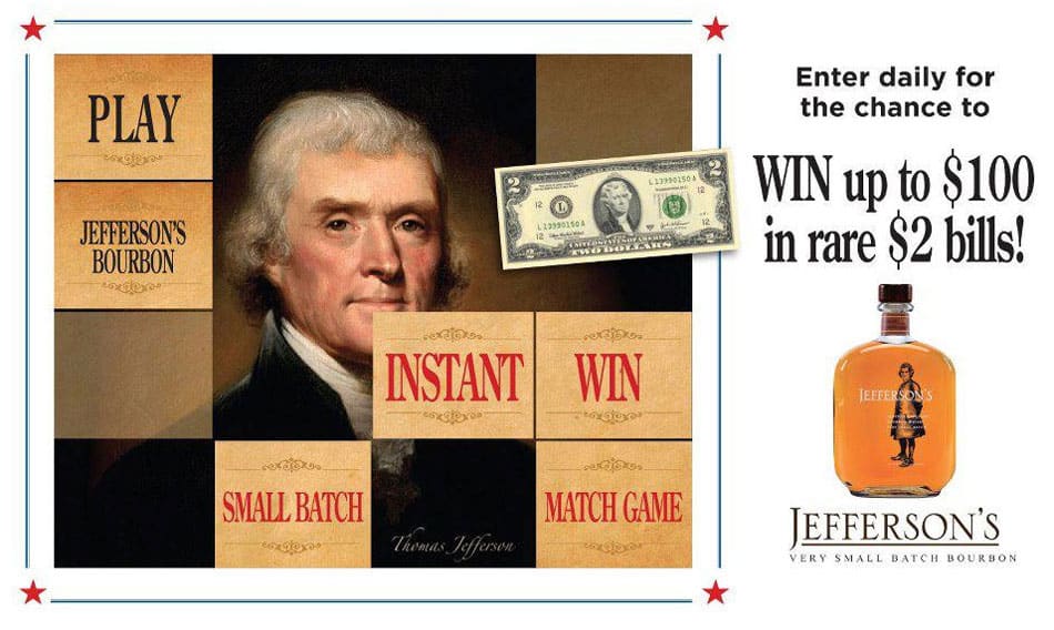 “We are excited to introduce this new instant win game, which will allow consumers and fans to interact with our ridiculously small batch brand in a fun, playful way. Plus, it links our bourbons to the iconic $2 bill,” said Trey Zoeller, Jefferson’s Bourbon Founder and Master Blender.