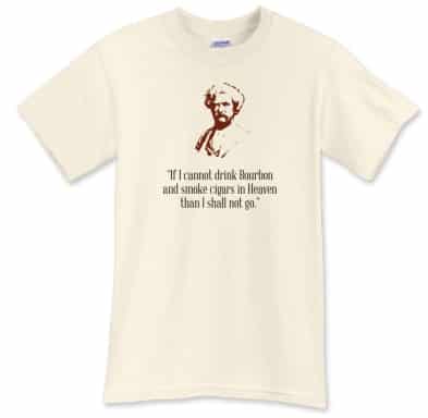 Just a brief update for everyone this morning. I’m pleased to announce we added our 2nd design to the Bourbon & Banter online store this weekend. Our newest design should appeal to not only bourbon lovers, but also cigar aficionados and Mark Twain devotees. Let me introduce you to our newest design…“If cannot drink Bourbon and smoke cigars in Heaven than I shall not go.”