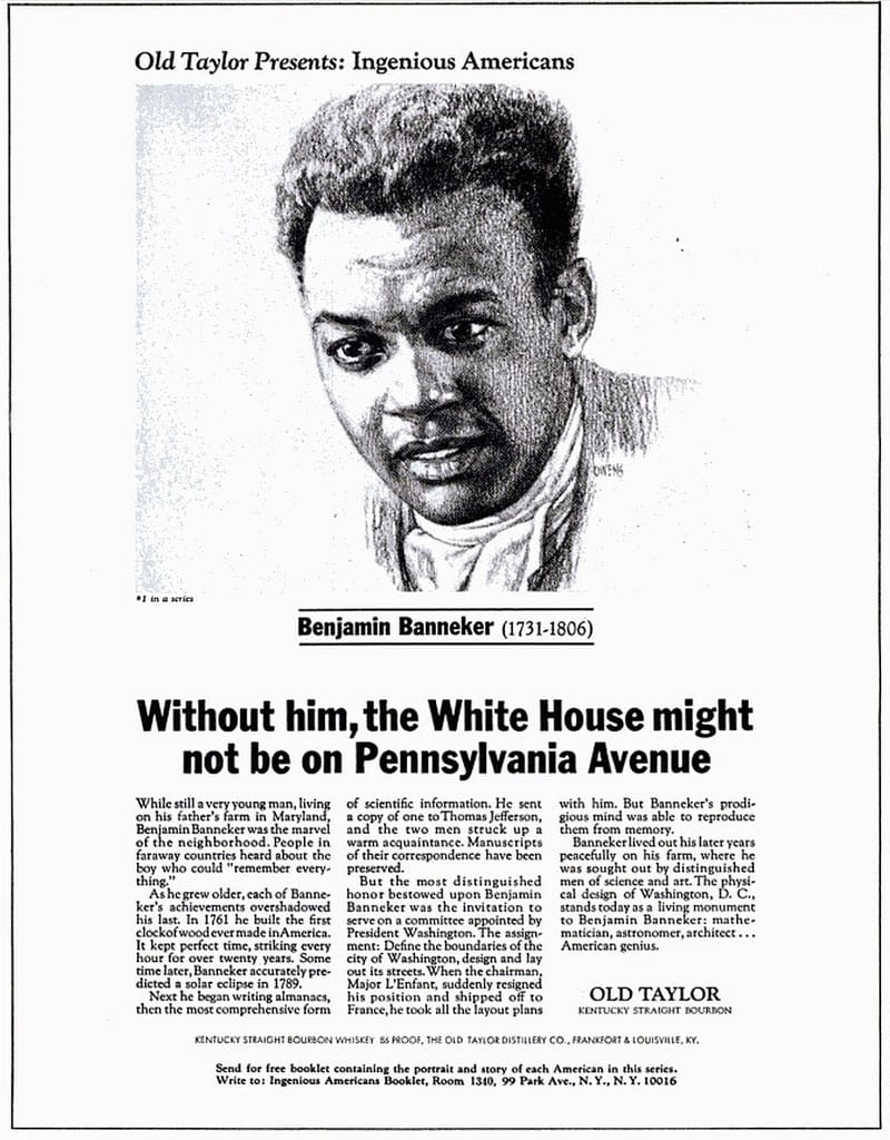 I discovered this Old Taylor Bourbon advertisement in a 1966 copy of Ebony magazine. It’s the first in a series featuring “Ingenious Americans”.  I haven’t seen any other ads in the series, but I will definitely be keeping my eyes open for them to see if it was continued for any period of time.