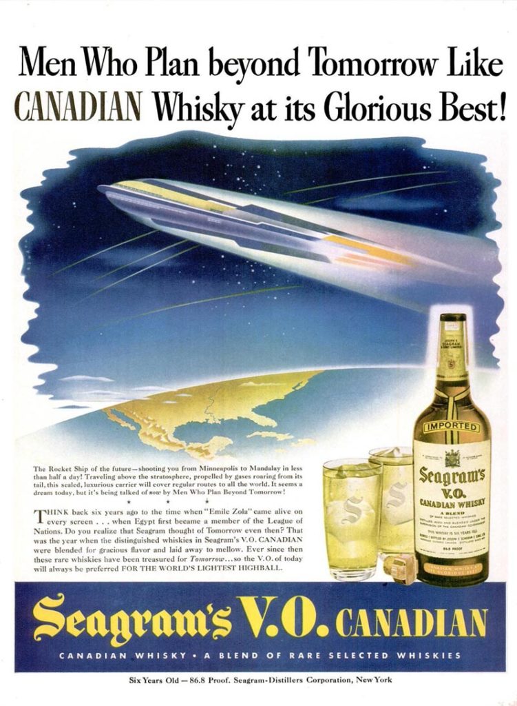 These are some of the ads I found particularly interesting. There are many more than these from Seagram’s and other sources on the internet. All I can say is the future remains bright, drink whisky.