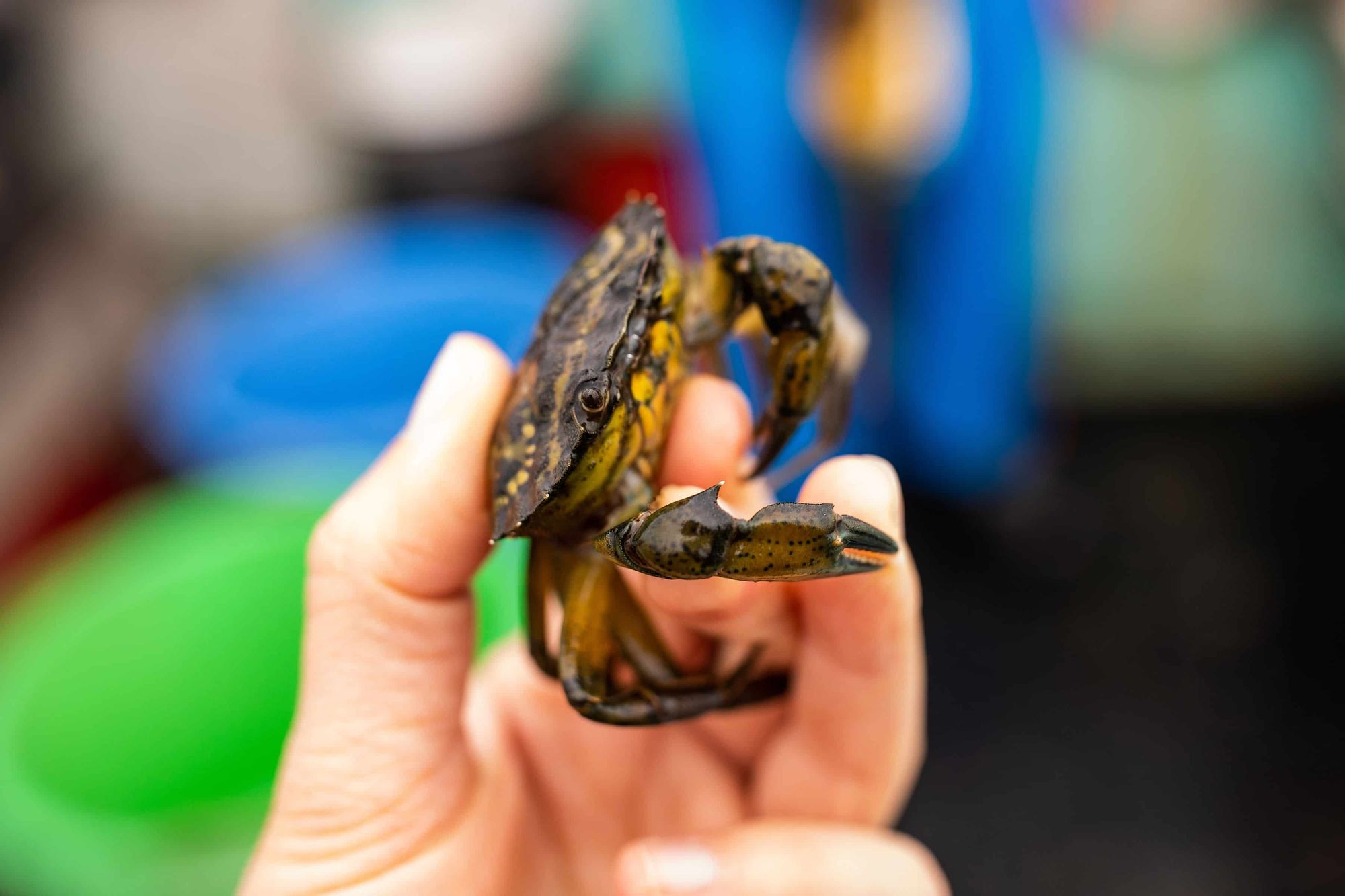 Since I’m always up for an adventure, of course, I wanted to try Crab Trapper Whiskey when offered a sample. It’s a 4-year-old bourbon steeped with 90 pounds of green crabs and seasoned with spices reminiscent of a low-country boil. Crazy, right? But I was up for it.