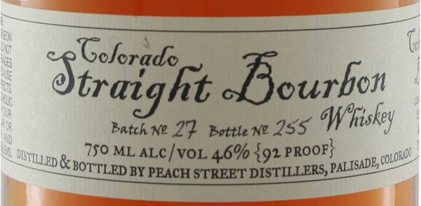 Colorado Straight Bourbon is made by Peach Street Distillers, out of Palisade, Colorado. Peach Street Distillers boasts of being “artisan experimenters” and “fearless craftsmen” located in a “secluded mecca perfect for growing the finest fruits and grains on the planet.”