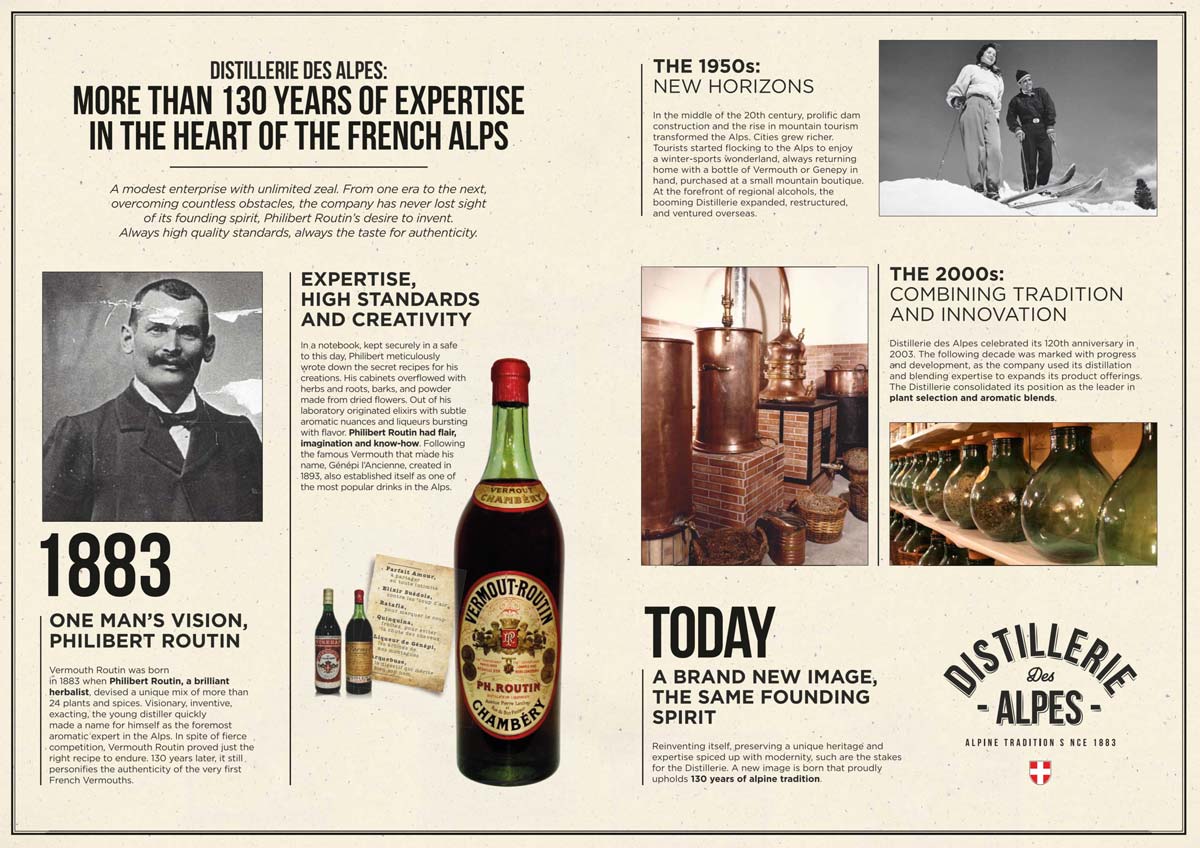 The distinction of the Routin Rouge comes from its rich history, which dates back to 1883 when Philibert Routin alchemically married 24 herbs and spices to craft one of the most popular vermouths in the Alps. Nearly a century and a half later, Routin Rouge still bears its maker’s name and employs its signature recipe (which is tucked away in a safe along with Routin’s other proprietary recipes). The process of making this Vermouth is not a quick one, taking four weeks for the two dozen ingredients to blend together with Vin de Savoie, a local Alpine grape varietal. After all the goodness has soaked in, Routin adds Sauvignon Blanc, dumps the mixture into oak barrels, and are aged for six months. As the final step, aged and unaged Vermouth are mingled together to yield a rich, balanced final product. The care and legacy of this process is apparent in this velvety, herbaceous liqueur.
