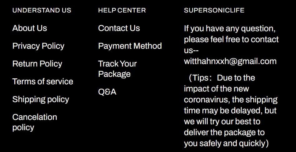 So, sections “Understand Us” and “Help Center” are a bit weird, but at least make some sense. But WTF is “Supersoniclife?” Well, one thing we know for sure is that corporate email address is easy to see. The Tips are excellent. There are multiple tips. Wait, there’s just one?